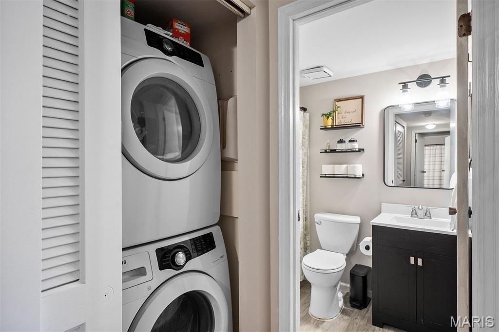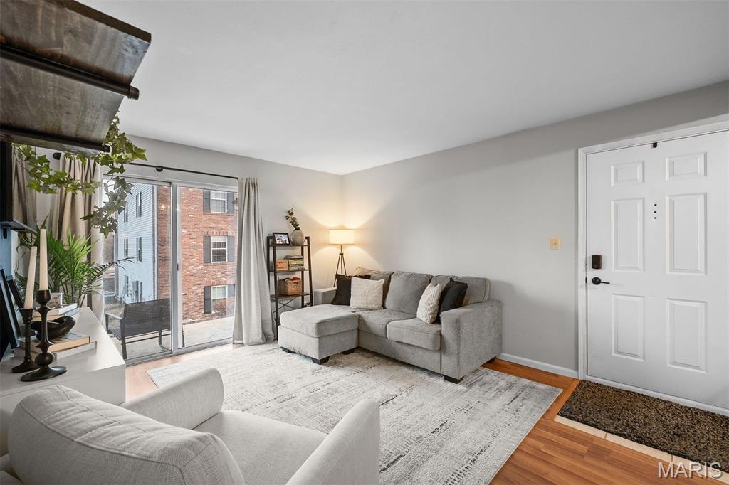 Beautifully updated and well maintained condo in a prime location! This bright and open two bedroom condo is the perfect set up for first time homebuyers, downsizers and everything in between. Newer hardwood floors flow throughout the open concept living space. The kitchen features white cabinets, stainless steel appliances, new lighting & tons of storage. The primary bedroom has multiple closets and an updated en-suite bath with a large walk in shower. A second bedroom with a huge closet and a second updated full bathroom with tub & shower complete the space. Spend an evening on your covered patio complete with additional storage space and direct access to the nearby common areas. In unit laundry, a covered carport space, a rarity in the complex, and a neighborhood pool provide the all the conveniences you want in this move in ready condo!