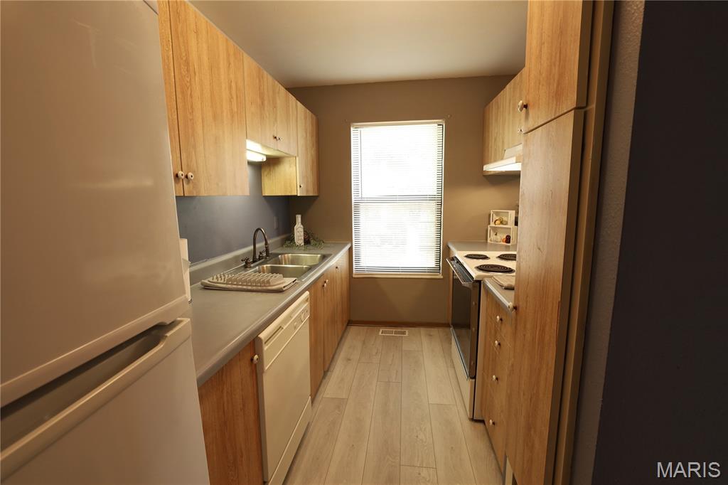 Welcome home to this charming 2-bedroom, 2-bath end-unit townhouse tucked away in a quiet neighborhood near Sunset Park in Florissant. The main level features brand-new flooring, a spacious living room, a convenient half bath, and a kitchen with an adjoining dining area that opens to a private deck—perfect for morning coffee or evening cocktails. Upstairs, you’ll find two generously sized bedrooms, both freshly painted with ample closet space, along with a full bath featuring new flooring and fresh paint. The lower level offers an unfinished basement with a laundry area, providing plenty of storage or the opportunity to add additional living space with your finishing touches. Enjoy a convenient location close to parks, shopping, and dining. Florissant occupancy inspection has already been completed, making this home truly move-in ready and just needing your personal touches.