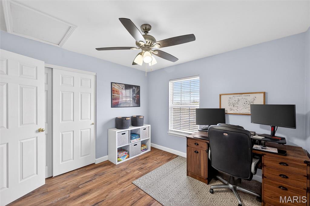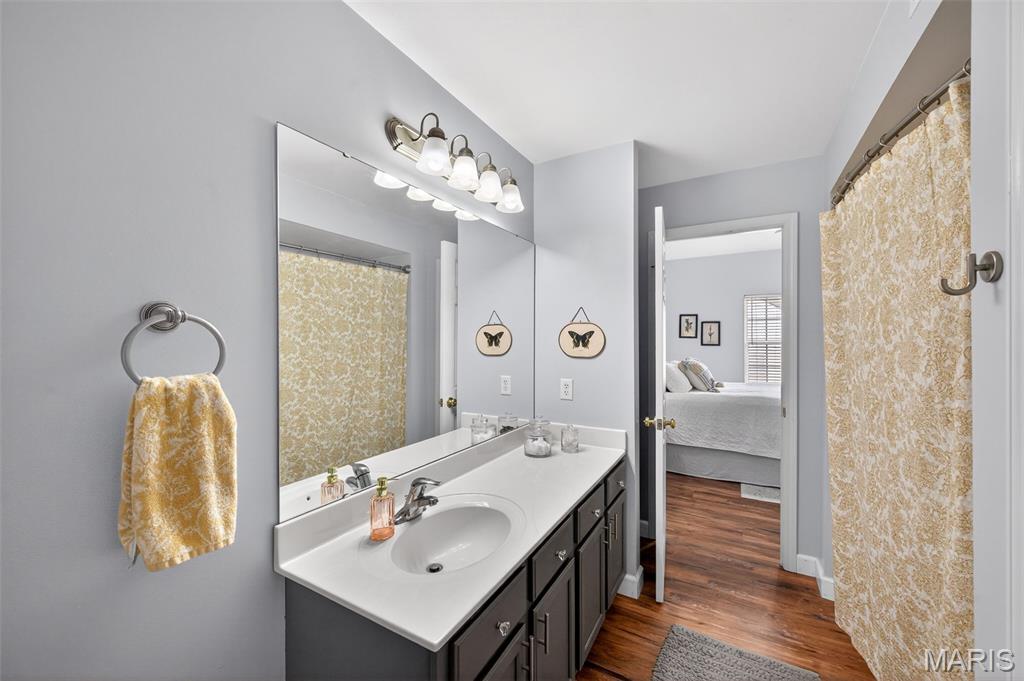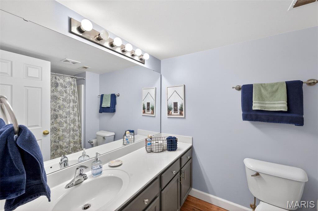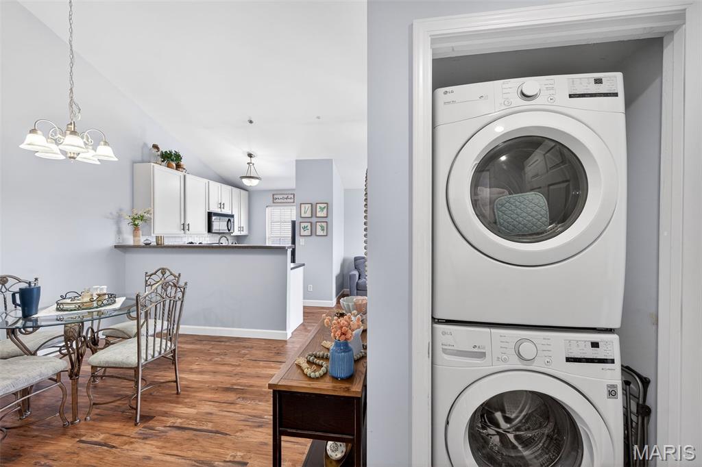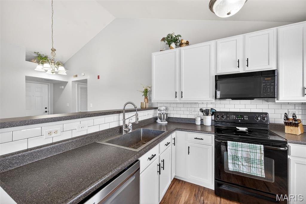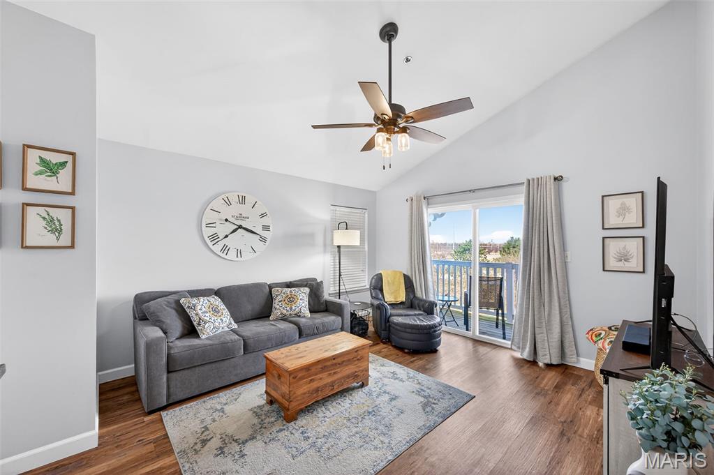 Welcome home to this beautifully updated condo in O'Fallon, offering style, space, and convenience all in one. This 2 bed, 2 full bath unit is thoughtfully designed with vaulted ceilings throughout. Luxury vinyl plank flooring flows through the home, complementing the bright and inviting layout. The kitchen is both functional and stylish, offering ample cabinet and counter space along with the convenience of a breakfast bar, perfect for casual dining or entertaining. Both bathrooms have been nicely updated, adding a modern touch. The primary bedroom is impressively spacious, complete with a walk-in closet and private en suite bath. This home also comes with one covered parking space. Move-in ready and beautifully maintained- this condo is a fantastic opportunity for comfortable, low-maintenance living in a great location.